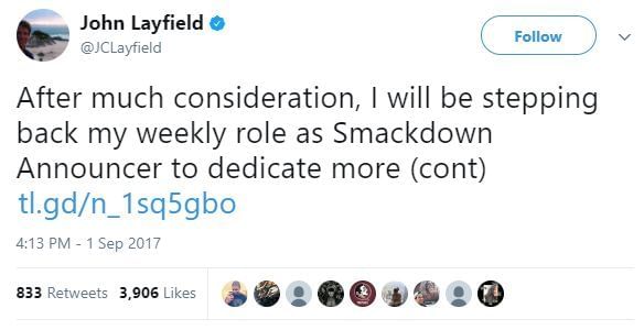 Following the announcement, The Dirty Sheets' report states that JBL leaving was the plan all along and was put in place during the Ranallo bullying scandal. It was felt that by firing him at the time, it would have given more credence to the bullying accusations and that Vince McMahon himself didn't want to throw JBL under the bus.
