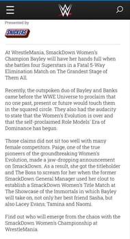 However, there seems to be a change in the plans and the match will now have a different stipulation. According to an article on WWE.com, Dana Brooke will no longer compete at WrestleMania, which makes the battle for the SmackDown Women's Championship at 'The Show of Shows' a Fatal 5-way elimination match.
