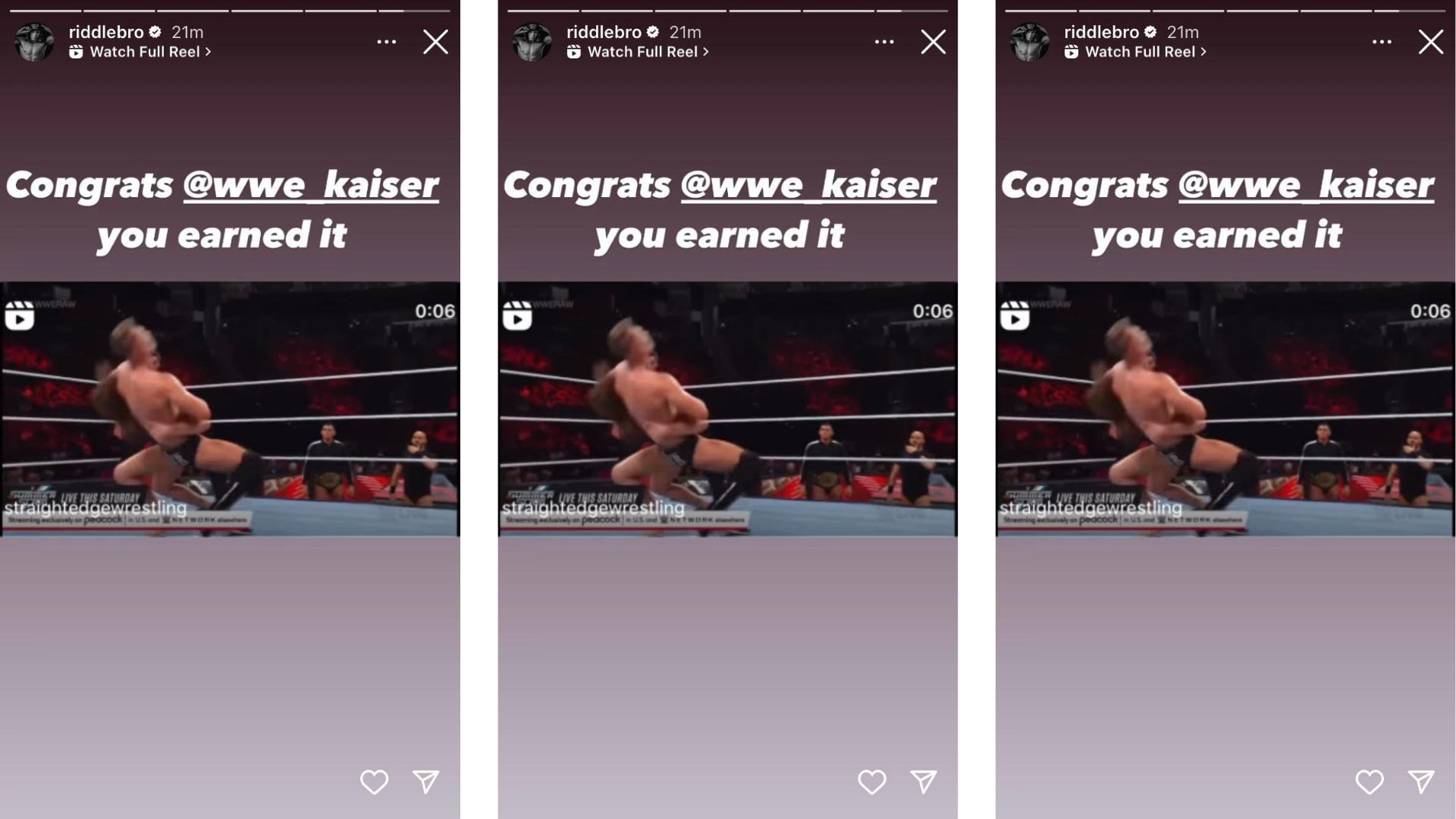The former United States Champion took to his Instagram story to break character and congratulate Ludwig Kaiser on the victory. Riddle claimed that Kaiser deserved the win and uploaded a video of himself getting planted with a DDT at the end of the match last night.