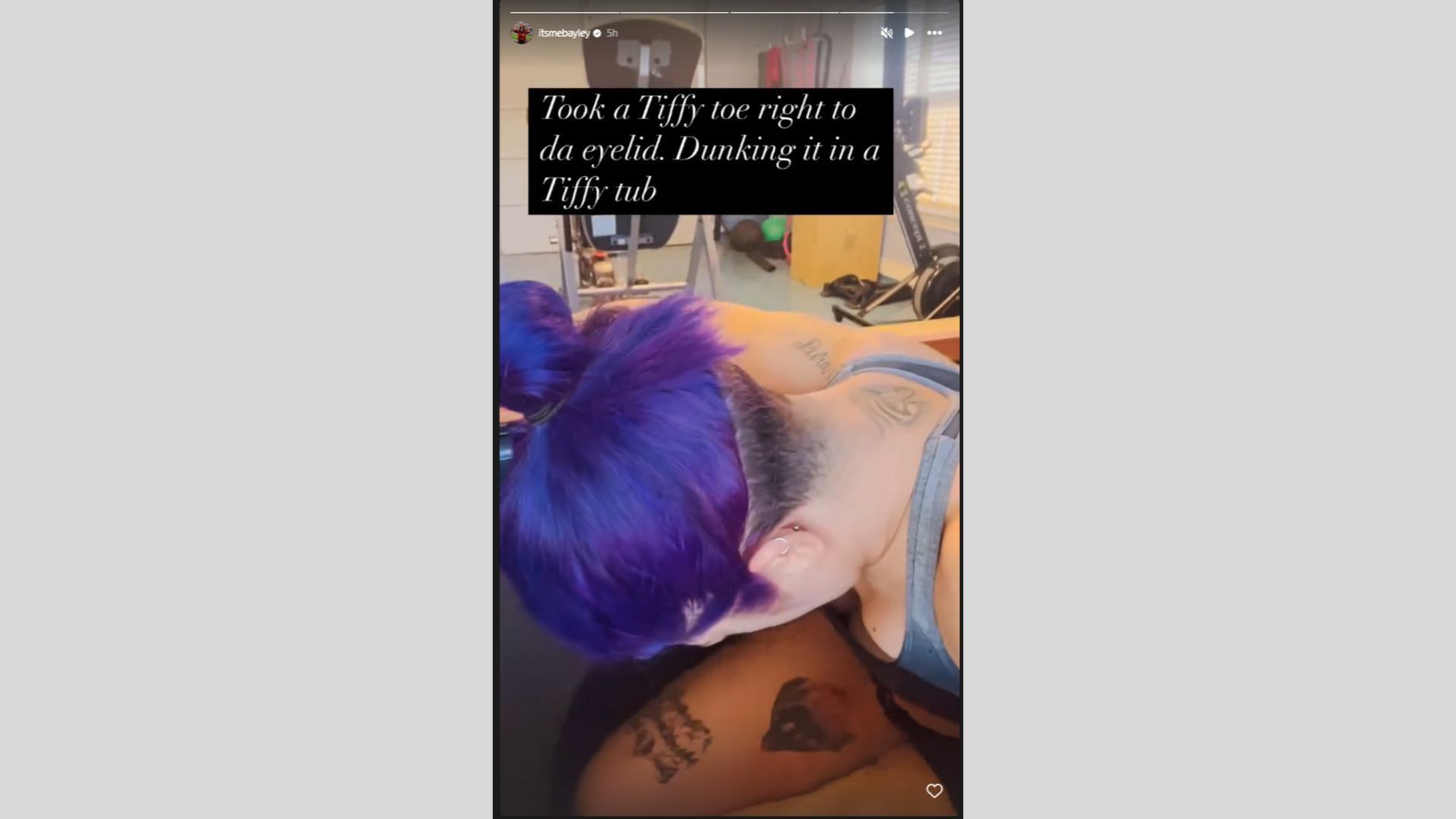 Taking to her Instagram stories, the star shared a video of herself in a tub, where she was dunking her head in the tub to soak it. She revealed that during her match she had taken a toe from Tiffany Stratton right to her eyelid. She showed off the bruise and said that she was going to dunk in the tub.
