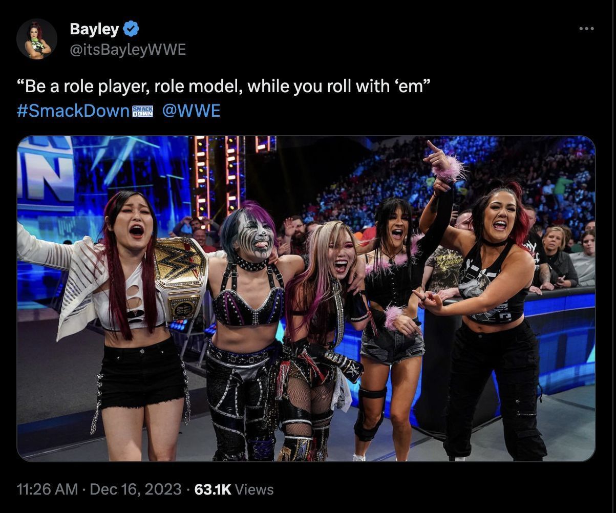 "'Be a role player, role model, while you roll with ‘em' #SmackDown @WWE," Bayley wrote.