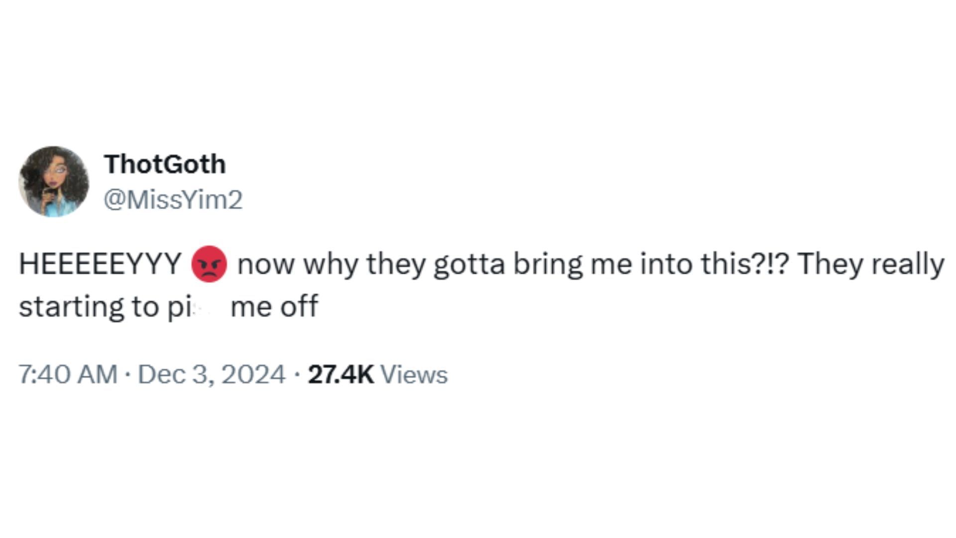 "HEEEEEYYY 😡 now why they gotta bring me into this?!? They really starting to pi** me off," she tweeted.