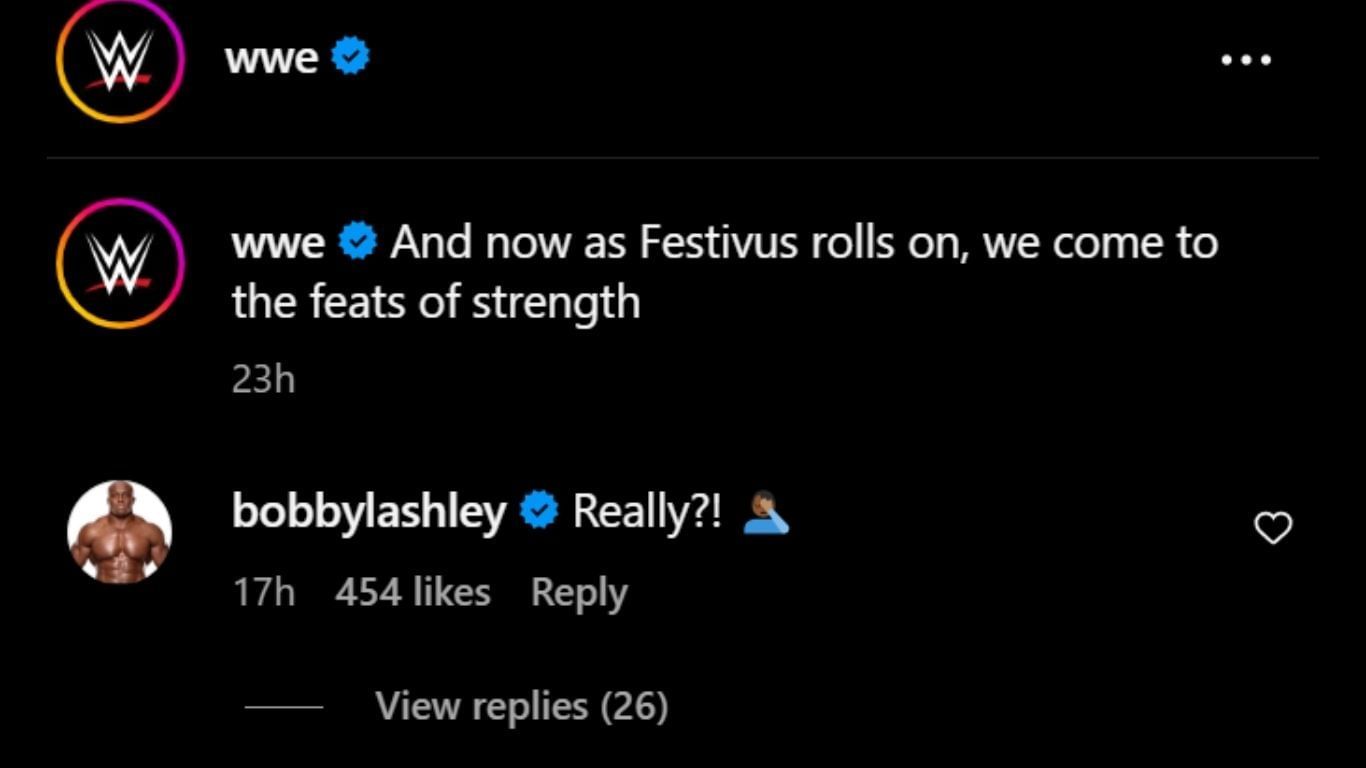 Bobby Lashley reacted to the post by sharing a one-word comment: