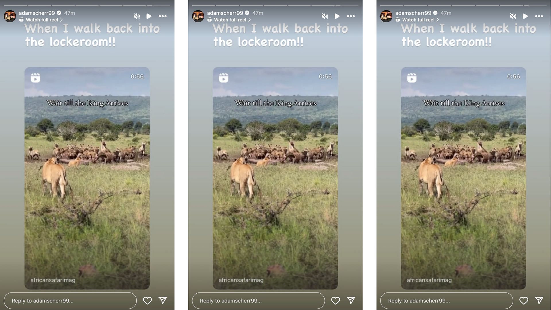 Strowman took to his Instagram story today to share a video of a lion standing by as a pack of hyenas enjoys a meal. The video is captioned with, "Wait til the King Arrives," and Strowman added, "When I walk back into the locker room." You can check out the video on the veteran's Instagram story by clicking here.