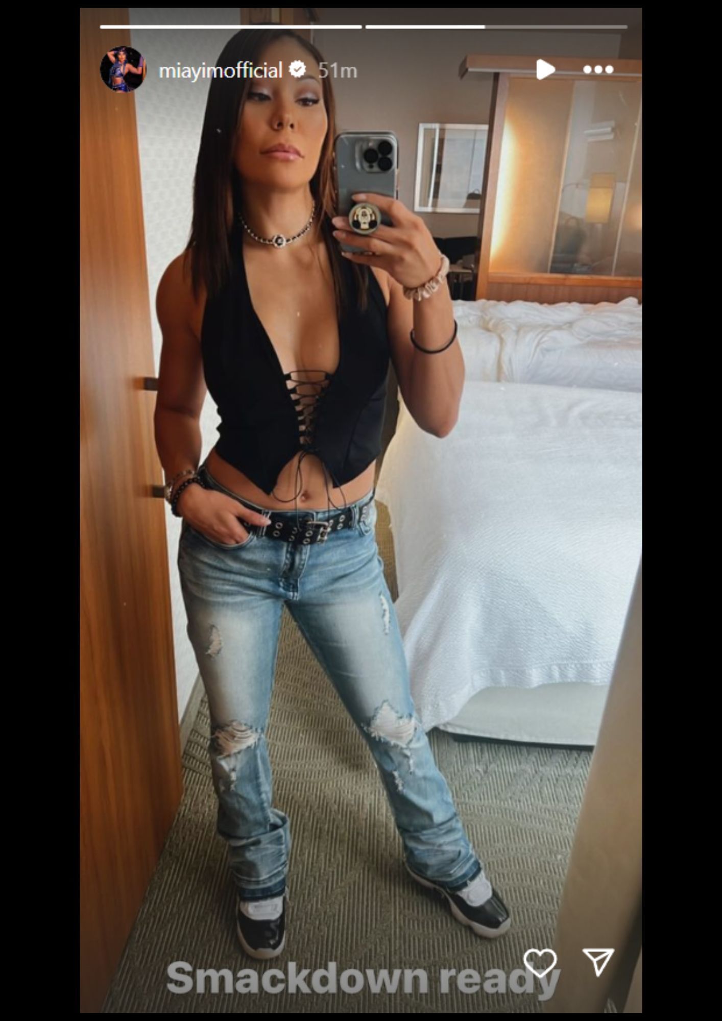 Tonight, Bianca Belair, Jade Cargill, and Naomi will take on Candice LeRae, Piper Niven, and Nia Jax, respectively, in the first round of the Queen of the Ring tournament on SmackDown. While one more match is yet to be announced, 'Michin' Mia Yim seems to be gearing up for the show.