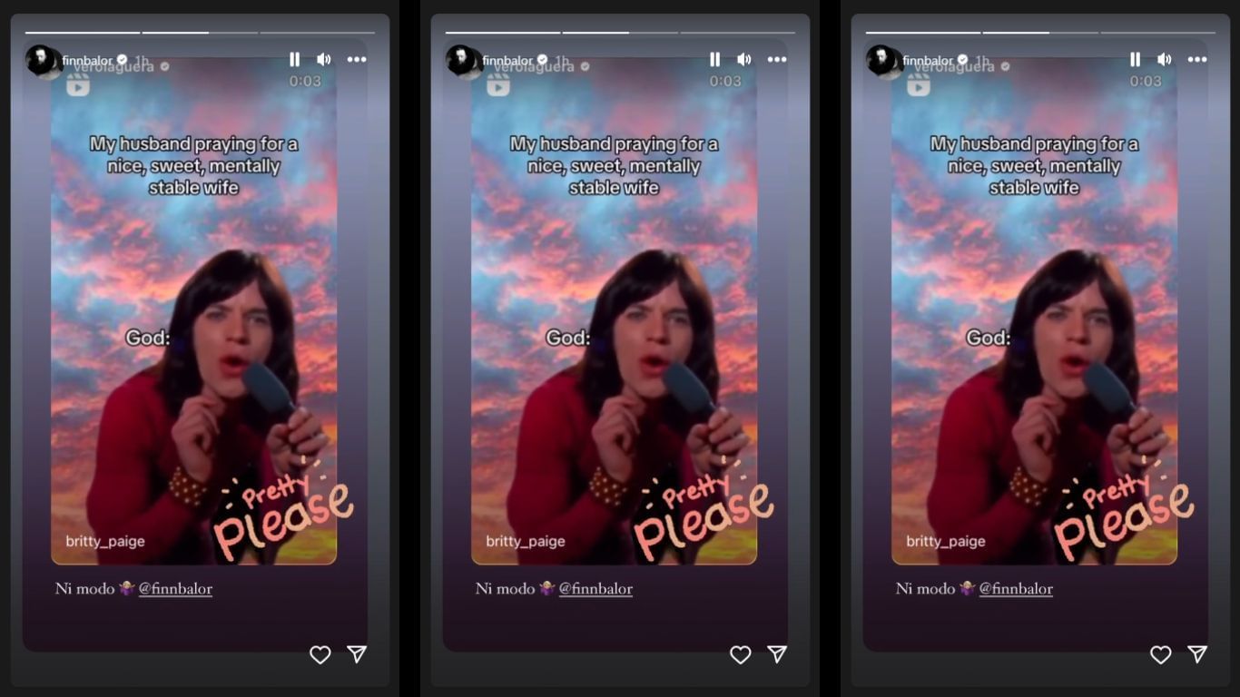 Finn Balor recently took to Instagram stories to share his reaction to his wife's hilarious update. The inaugural WWE Universal Champion reshared his better half's Instagram story that featured a reel joking about God not fulfilling a man's wish regarding the qualities he wants in his wife.