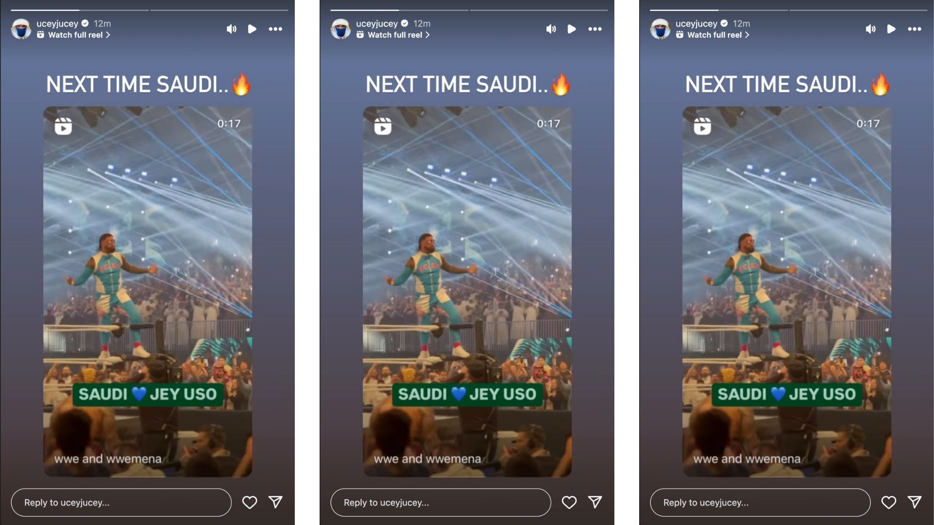 The Bloodline's Solo Sikoa, Jacob Fatu, and Tama Tonga defeated The Usos and Roman Reigns yesterday at the premium live event. Solo Sikoa pinned Roman Reigns after connecting with a second Samoan Spike in the match. Main Event Jey took to his Instagram story to break his silence and sent a three-word message to the fans in Saudi Arabia. You can check out the veteran's Instagram story by clicking here.