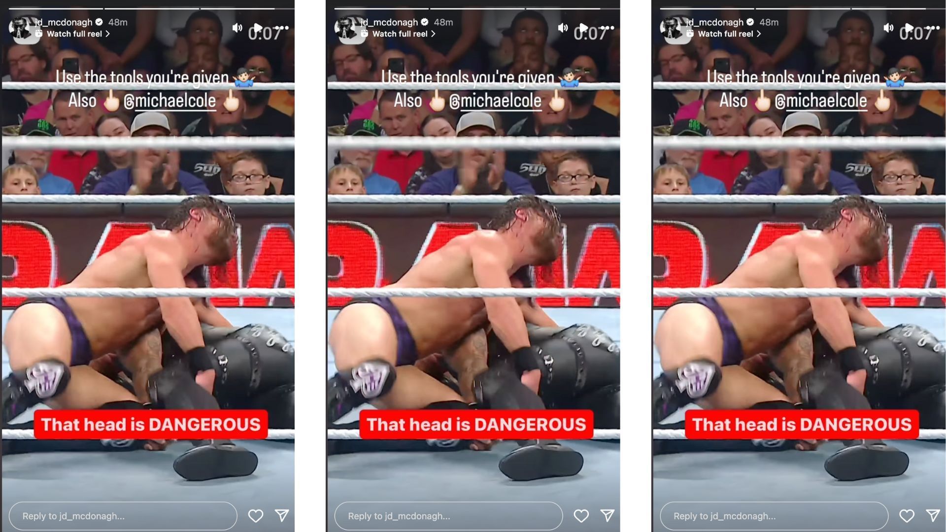 McDonagh responded to Michael Cole's comments on his Instagram story by mocking The Voice of WWE and you can check out his post by clicking here.