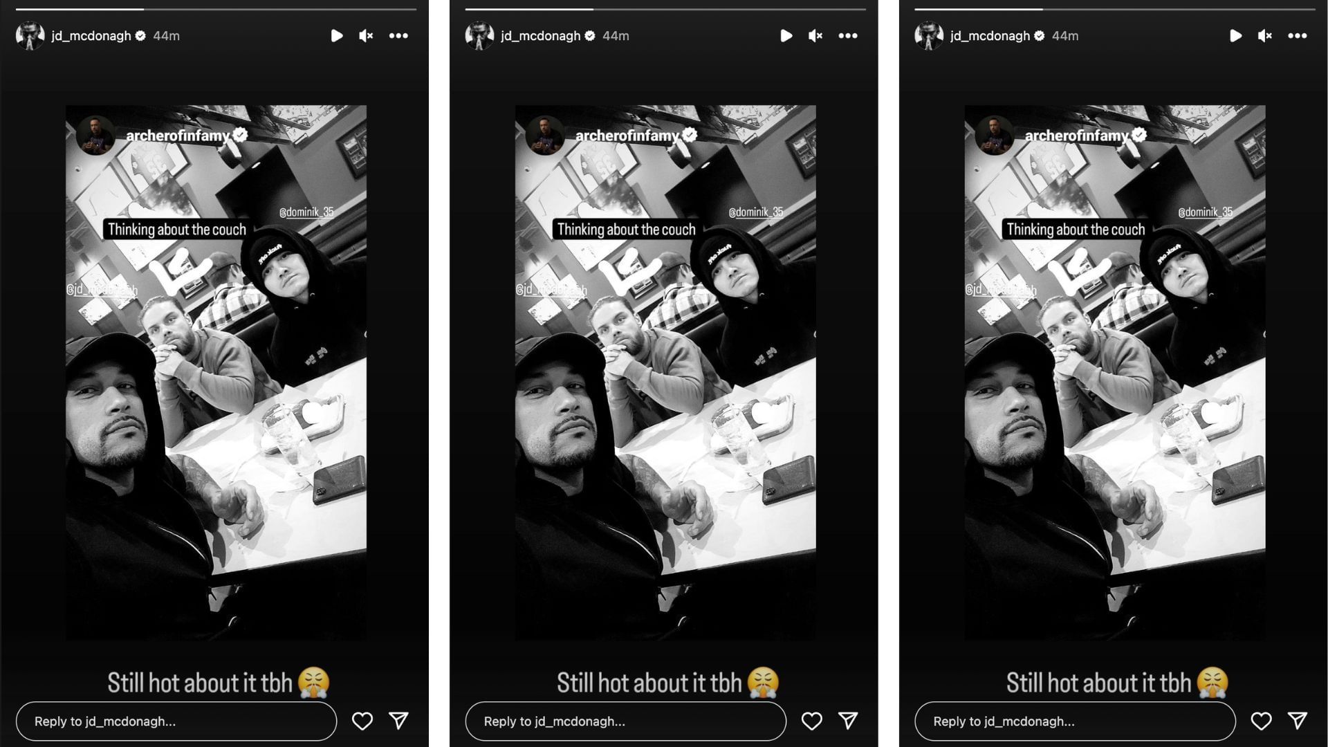 Damian Priest took to social media earlier today to poke fun at McDonagh for being angry about the couch incident this past Monday night on the red brand. McDonagh reacted to Priest's post on Instagram and admitted that he was still angry about the situation.