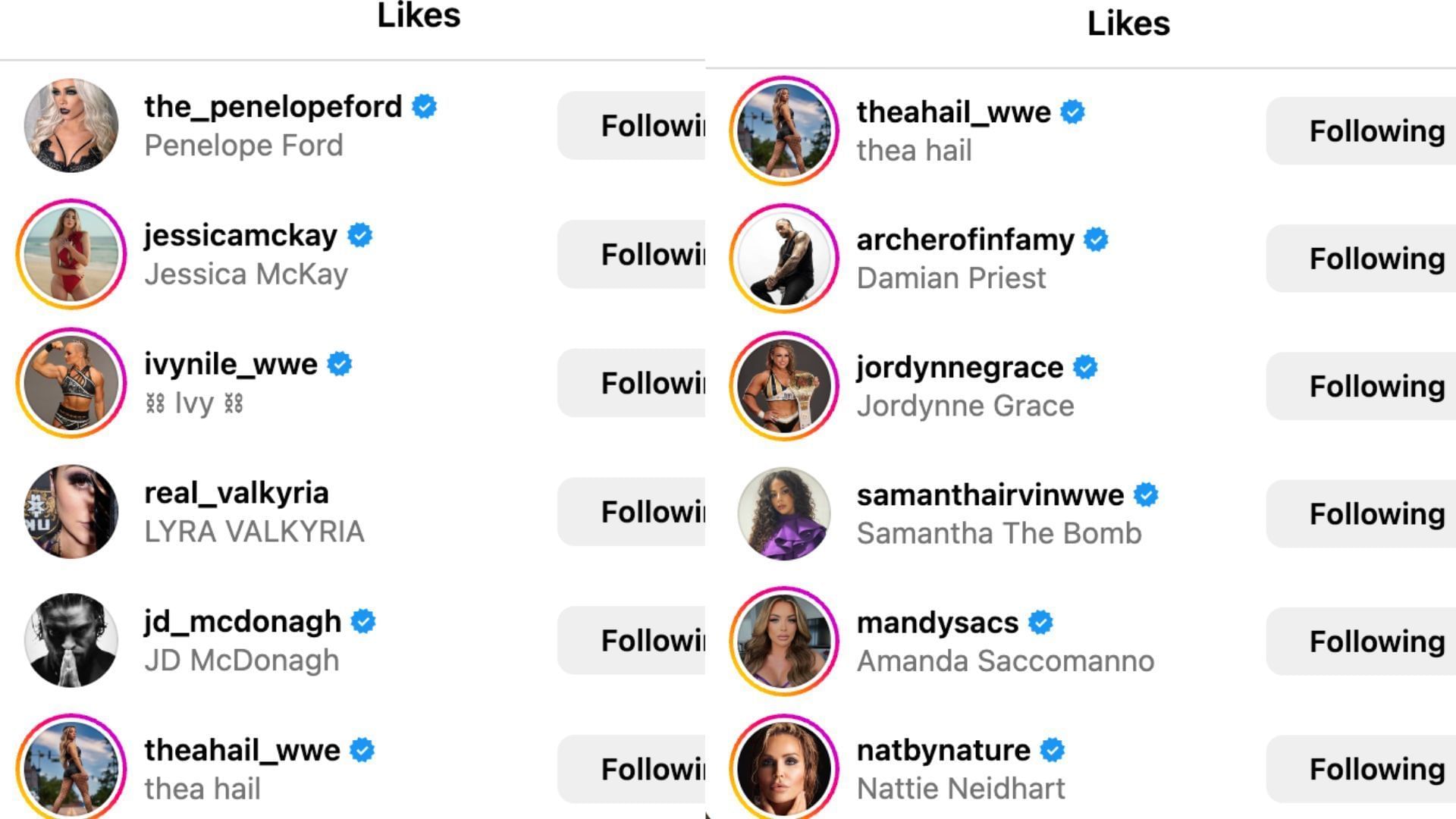 The post has accumulated over 130,000 likes so far, with World Heavyweight Champion Damian Priest and JD McDonagh being two of them. You can check out their reactions to Perry and Morgan's post on Instagram in the image below.