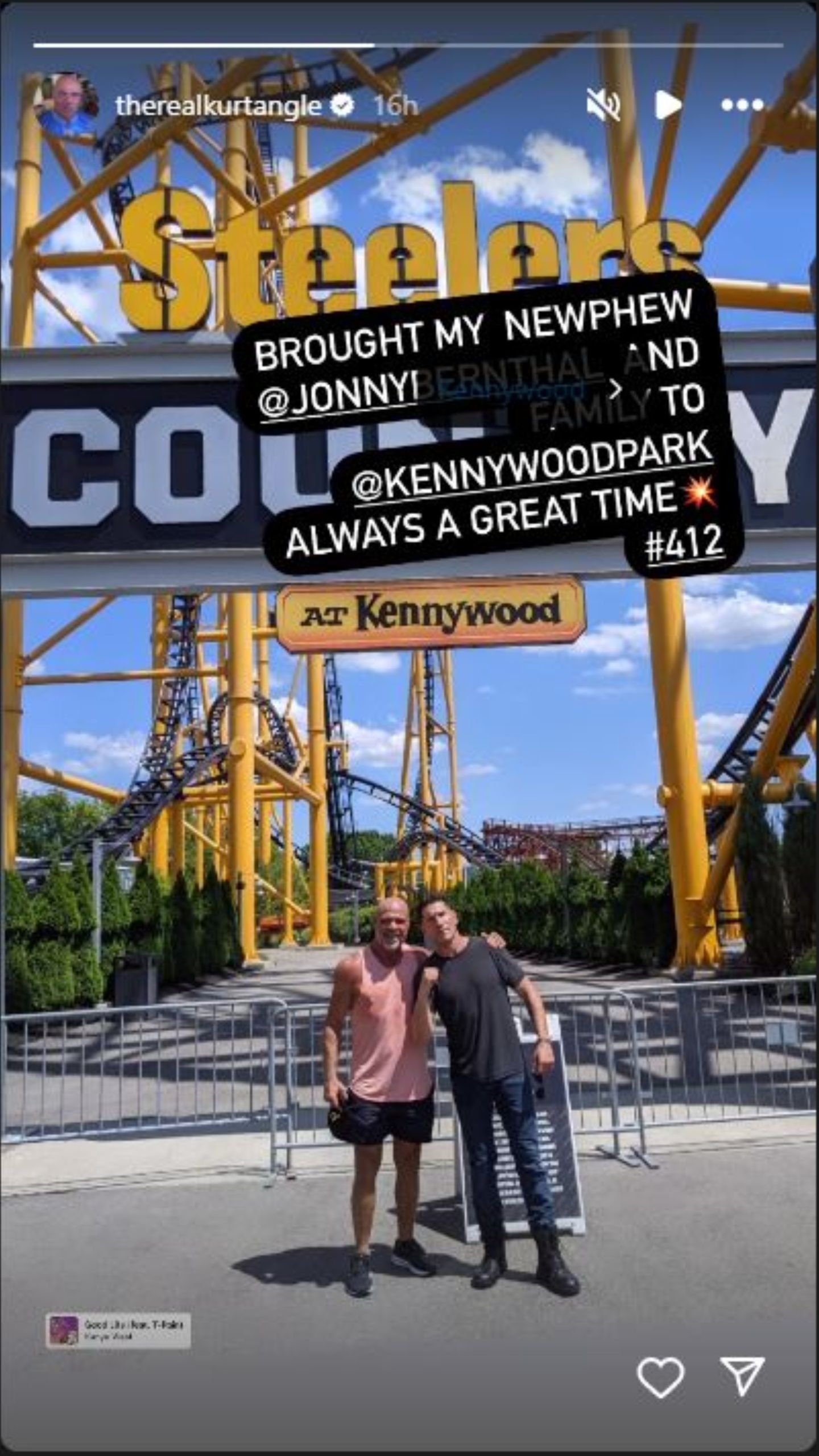 "Brought my nephew @jonnybernthal and family to @kennywoodpark. Always a great time," Angle wrote.