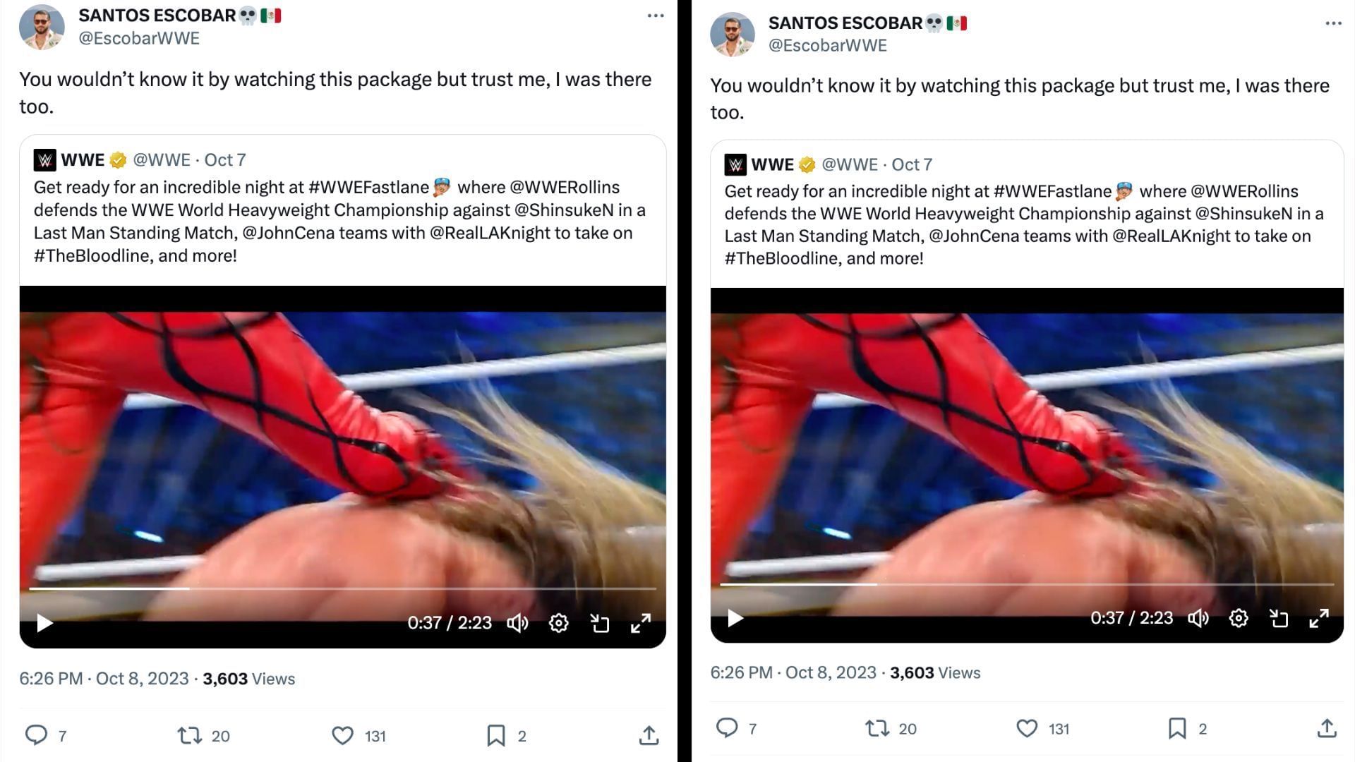 Santos Escobar took to his X account to react to WWE's promotional video for Fastlane. The video opened the premium live event last night and featured narration by Pat McAfee. However, Santos Escobar was not present in the video package for Fastlane, and he took to social media to address it.
