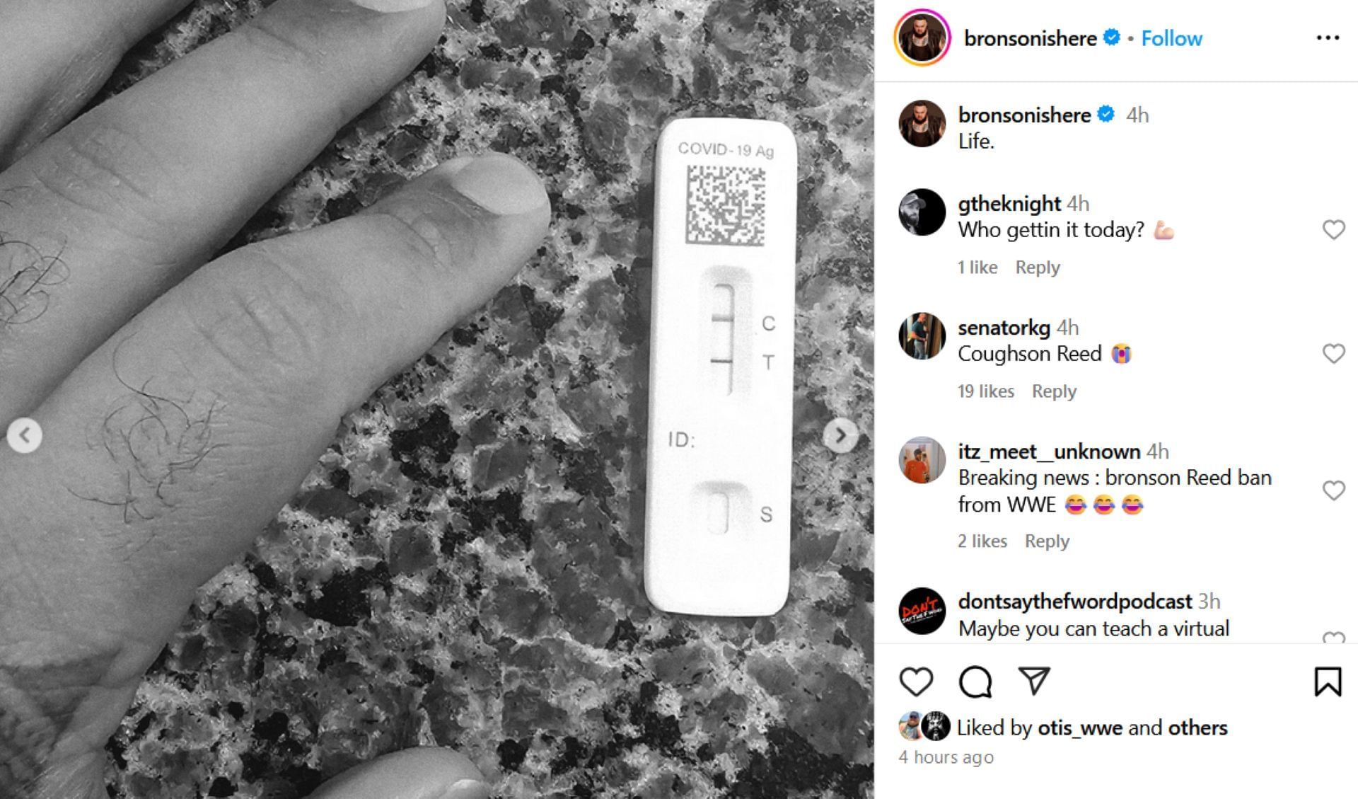 The Australian star will be missing tonight's RAW because he has tested positive for COVID-19. Reed took to Instagram this afternoon to share a photo of his coronavirus test, captioning the photo dump with just one word.