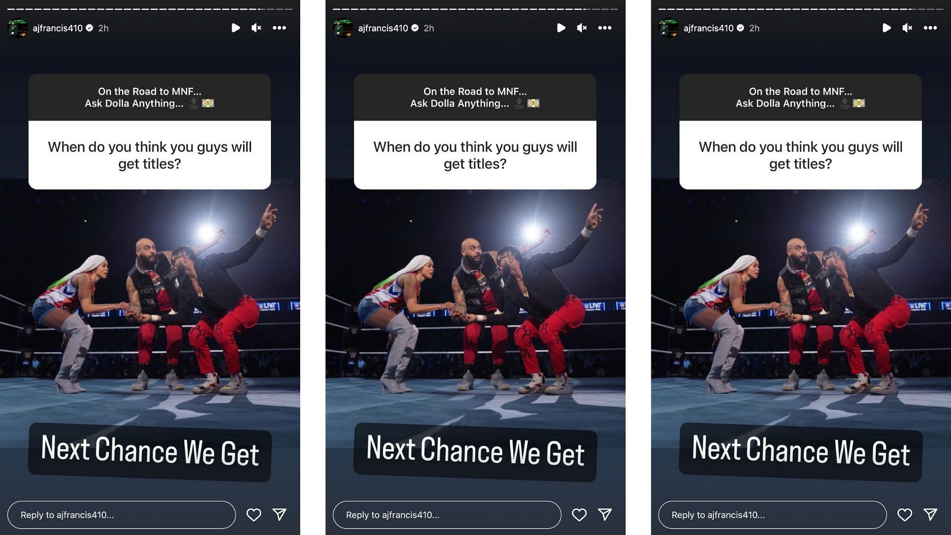 A wrestling fan asked Top Dolla on social media today when he thinks Hit Row will win the Undisputed Tag Team Championships. Top Dolla claimed that the group will be capturing the titles the next time they get an opportunity, as seen in his post below.
