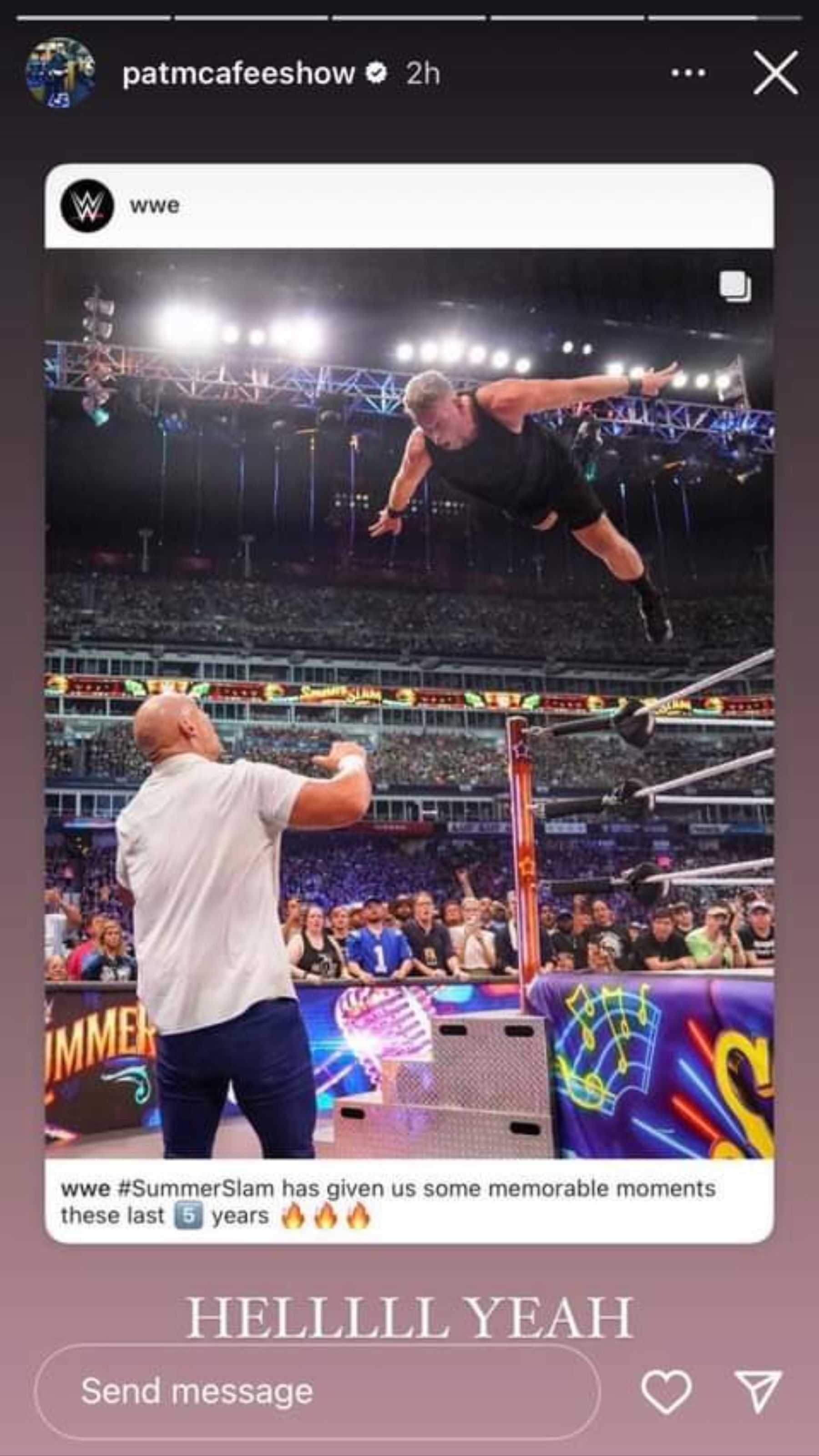 That didn't stop McAfee from sharing one of the best moments of his wrestling career on Instagram. It was him diving off the top rope onto Baron Cobrin, who he faced and defeated at SummerSlam last year in Nashville, Tennessee.