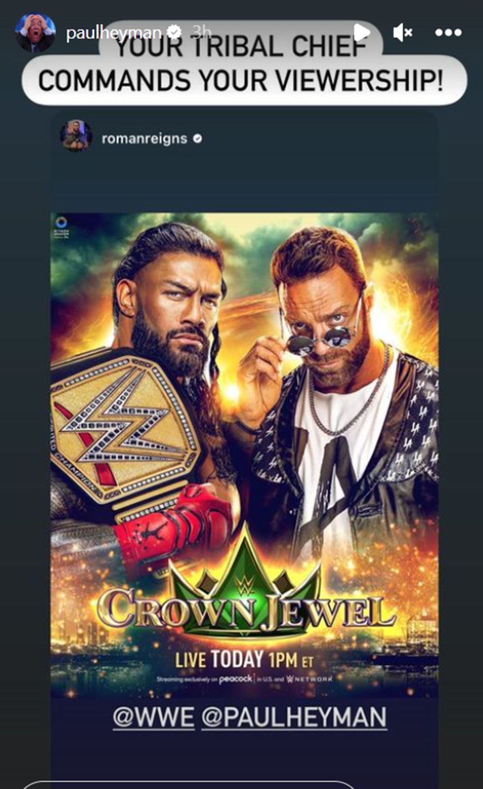 Ahead of the premium live event, Heyman shared a message on social media where he claimed that Reigns commands the viewership of the WWE Universe.