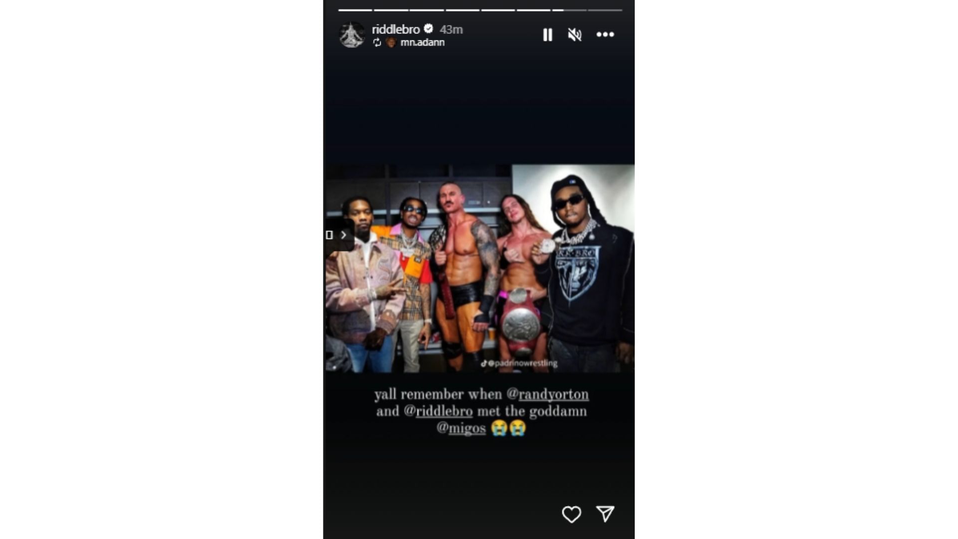 Matt Riddle has now shared a rare photograph of the duo, capturing the moment they met the popular hip-hop group 'Migos.'