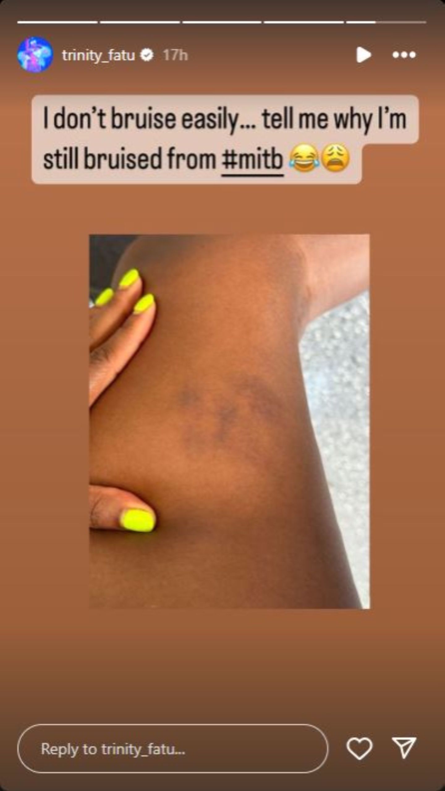 "I don't bruise easily...tell me why I'm still bruised from #mitb," Naomi wrote.