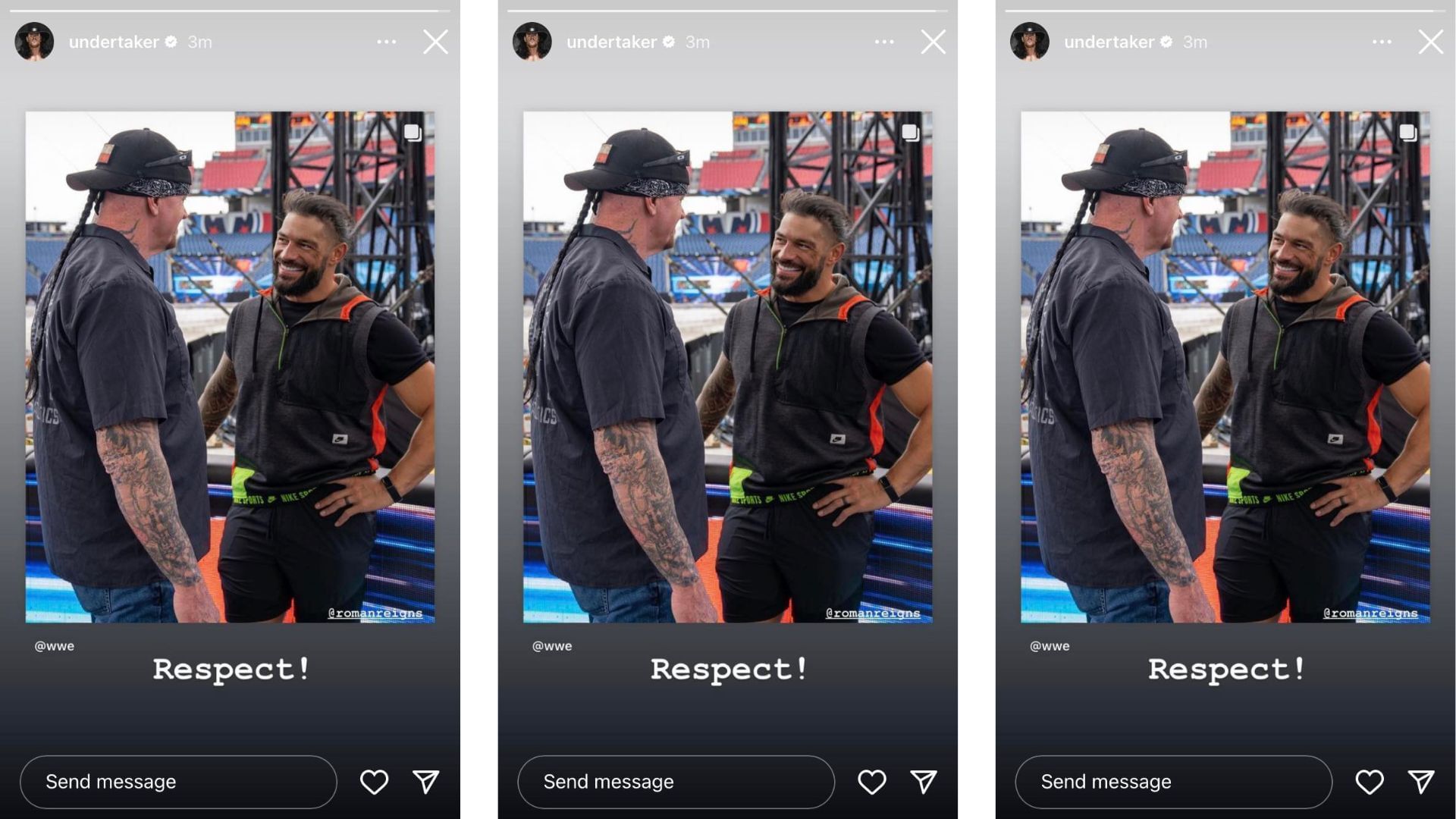 The Undertaker posted a photo of himself and Reigns on his Instagram story today with the word "respect" added to the image.