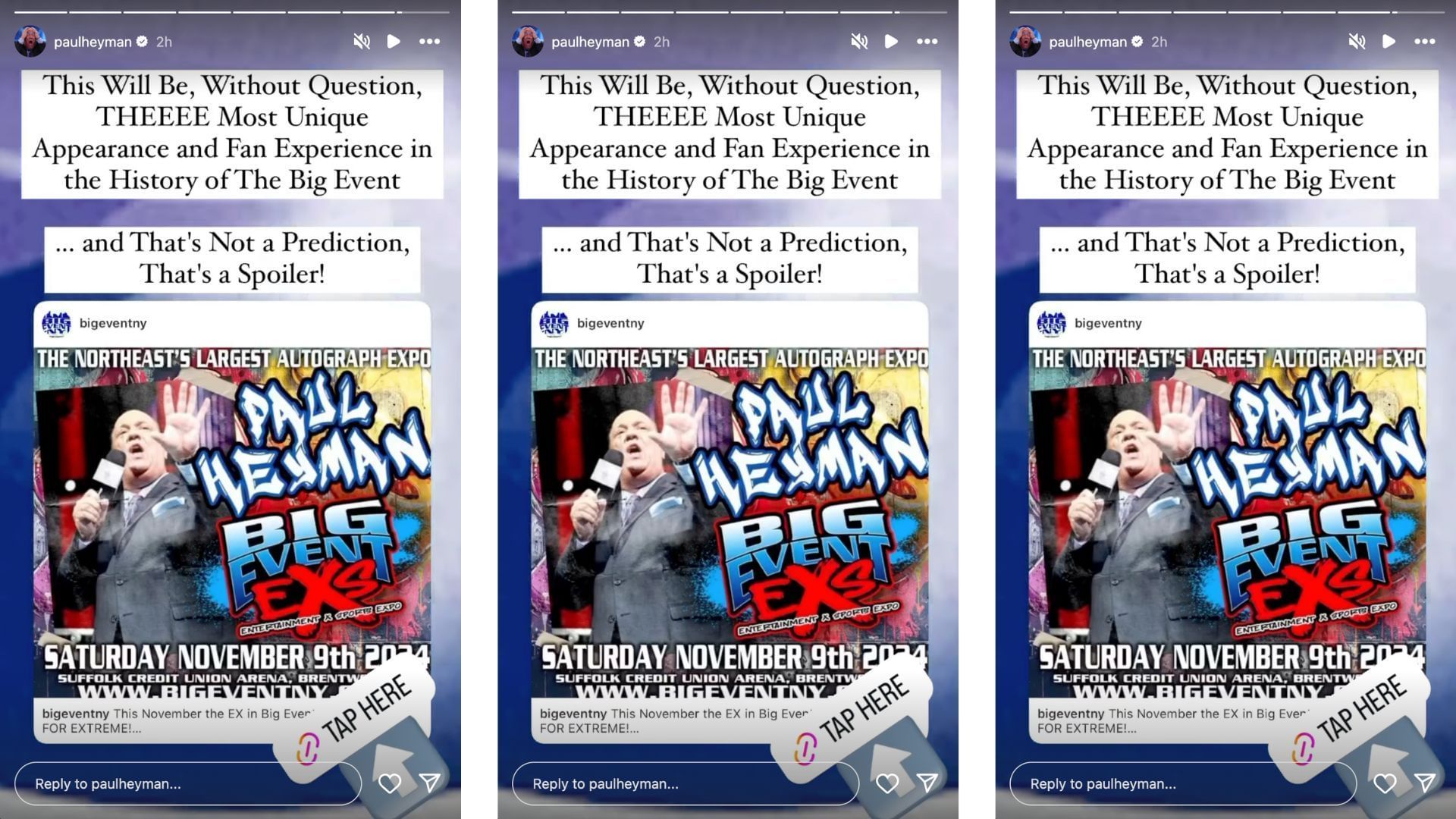 The Hall of Famer took to his Instagram story today to confirm that he will be appearing at The Big Event in New York in November. You can check out Heyman's Instagram story by clicking here.