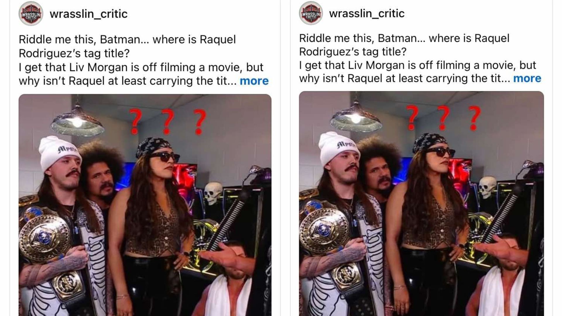 A wrestling fan on Threads pointed out that Raquel Rodriguez did not have her Women's Tag Team Championship with her during the backstage segment on RAW. The fan noted that Rodriguez should still have the title with her during Morgan's time away.
