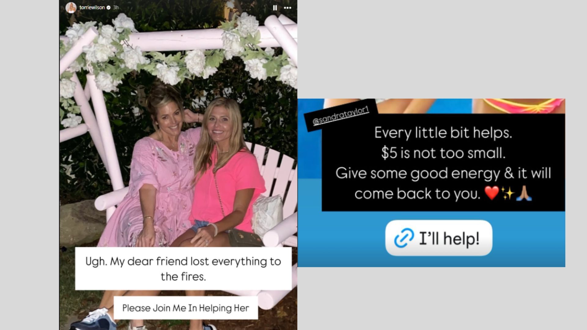 "Ugh. My dear friend lost everything to the fires. Please join me in helping her."