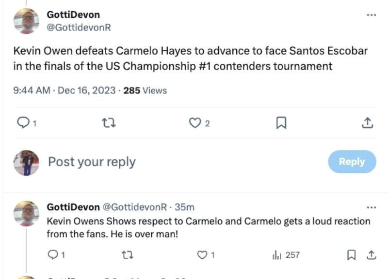 With this win, Kevin Owens will now advance to face Santos Escobar in the finals of the United States Championship Tournament.