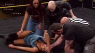After a relatively short match (that William Regal was watching backstage, as was mentioned by the announce team) Moon delivered her finisher and left the ring victorious. However, much to our shock and dismay, Kay wasn’t moving at all.