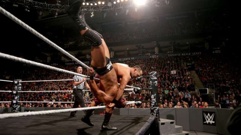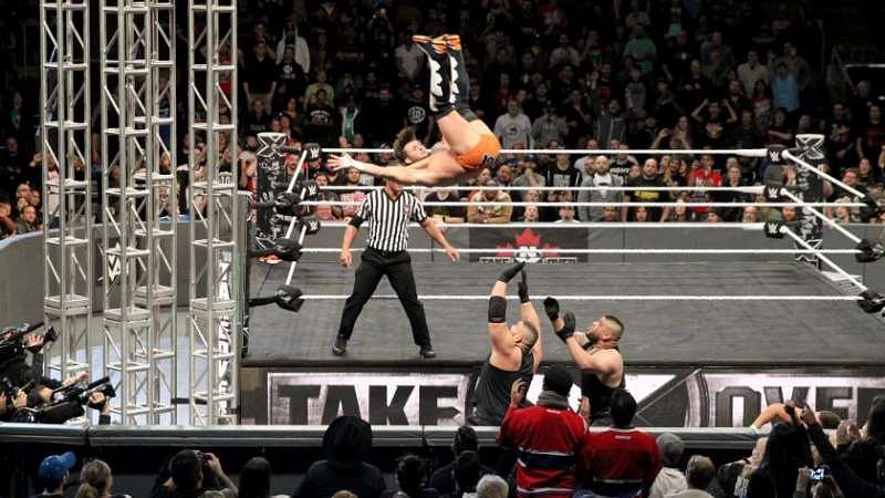 Both teams collected themselves for a second before Ciampa and Wilder went at it again. They hit each other with brutal body blows before Wilder tagged in Dawson. Ciampa tagged in Gargano before hitting Dawson with a rope-assisted STO. He then went for a plancha on Wilder but got hit by a forearm.