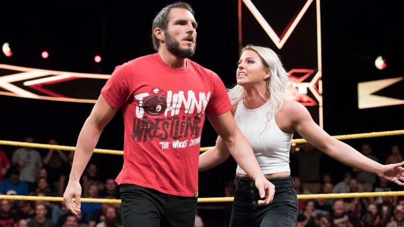 Johnny Gargano's music played at the end of NXT this week, and this time it is Johnny Wrestling that comes out to the ring, but first, his wife, Candice LeRae, appeared on the ramp. The two headed to the ring to a thunderous ovation from the NXT Universe.