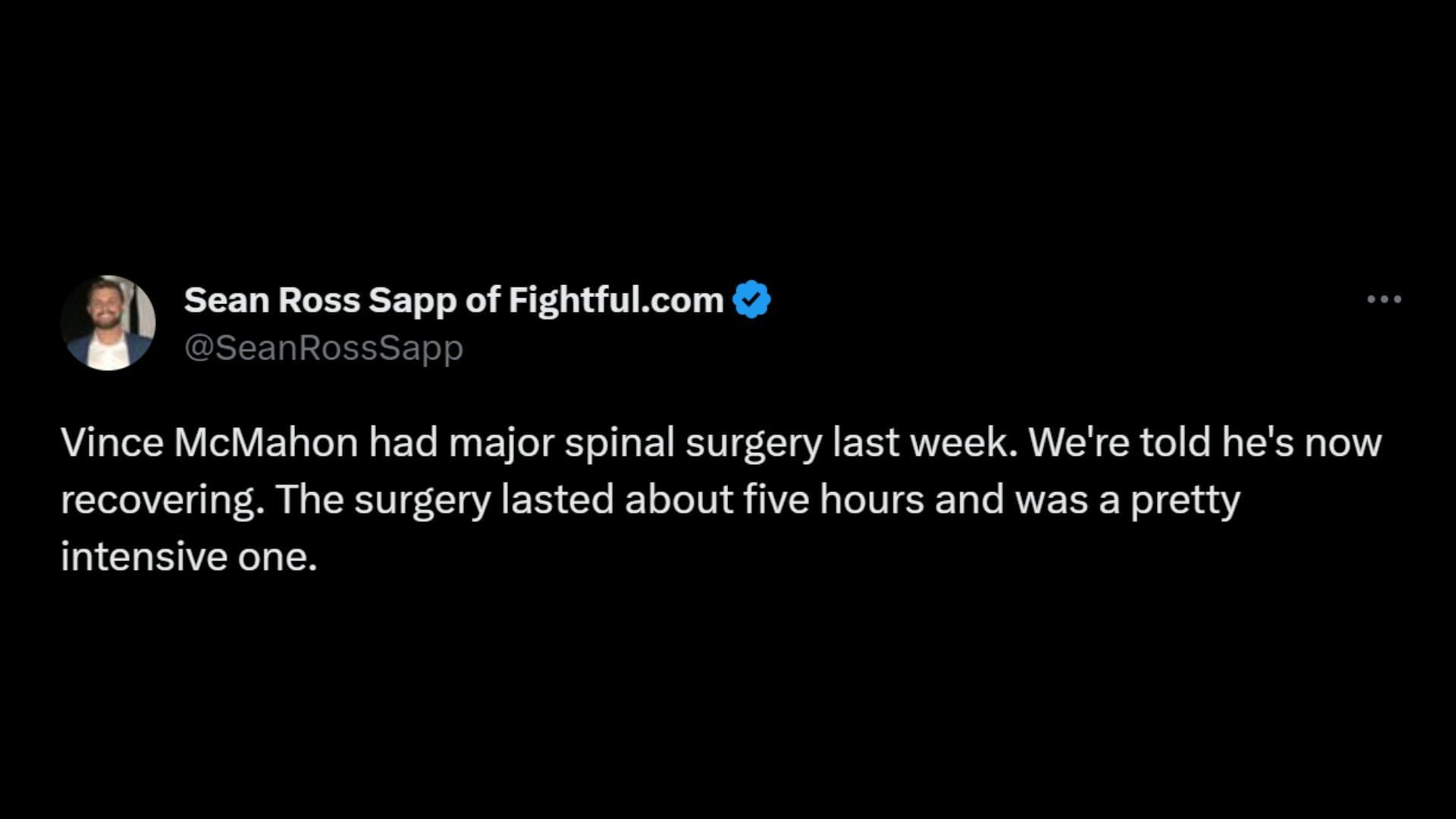 "Vince McMahon had major spinal surgery last week. We're told he's now recovering. The surgery lasted about five hours and was a pretty intensive one," reported Sean Ross Sapp.