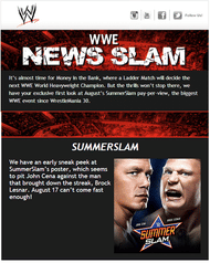 After sending an email list to their serve, WWE News Slam, which had a sneak peak poster of SummerSlam, WWE have been reportedly upset about the fact that Amazon had published it. The early sneak peek revealed a possible main event match for the pay-per-view between John Cena and the returning Brock Lesnar, who was last seen in the ring breaking The Undertaker’s immortal streak at Wrestlemania.