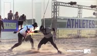 The fun part of this Elimination is, it’s a competition where the two contestants are blindfolded and given sticks. The first person to break two sticks over the other person’s head wins. And it doesn’t even technically have to be their heads, just any part of their body. I could watch people do this for hours at a time. I want this in the Olympics. It should be bigger than football and baseball combined.