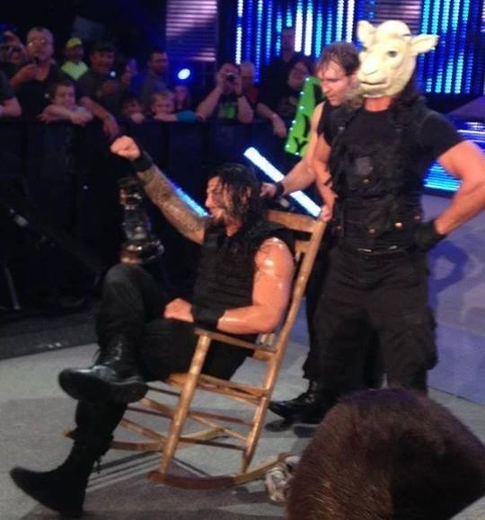 The Shield’s night didn’t end there, after knocking out Kane they started to have fun with the crowd and went on to mock the Wyatt Family as Reigns sat on a rocking chair just like Bray Wyatt and Rollins wore Erick Rowan’s sheep mask. The Shield’s fun interaction with the crowd on SmackDown totally hints towards a face switch. The crowd started to cheer them after their outstanding matches against the Wyatt Family and it looks like that WWE is going to focus on the crowd’s reaction towards The Shield and turn the “Hounds of Justice” into face, just like they turned Batista heel after the crowd didn’t stop booing him.