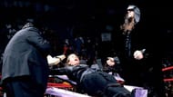 The two men used a variety of finishers, including each other’s, and broke out the weapons in a “no disqualification” match that left both men bloody. Further, Vince McMahon came out to help Austin get some shots in with a chair before winning the belt and joining forces with the boss.