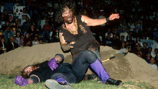 The first Buried Alive match took place in October 1996 at In Your House, with Undertaker squaring off against nemesis Mankind. Undertaker got the eventual victory, but not before the two men beat each other throughout the ring area and grave site.