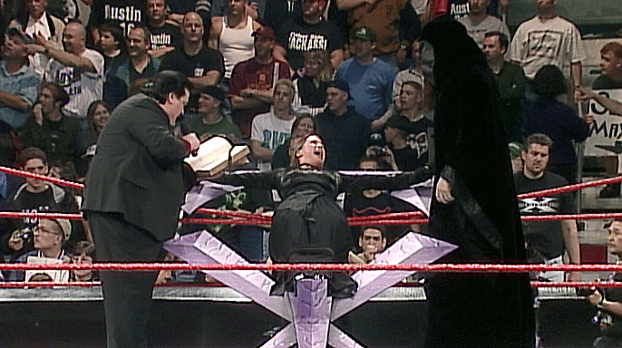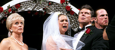 This was a sacrifice, more than a wedding. This “Unholy Ceremony” took place during the height of the Vince McMahon vs. Steve Austin feud. Undertaker kidnapped Stephanie and was forcing her into this dark marriage to please the higher power. The ceremony was presided over by Paul Bearer while Stephanie was in a black dress and attached to Undertaker’s sacrificial symbol. What transpired next? find out.