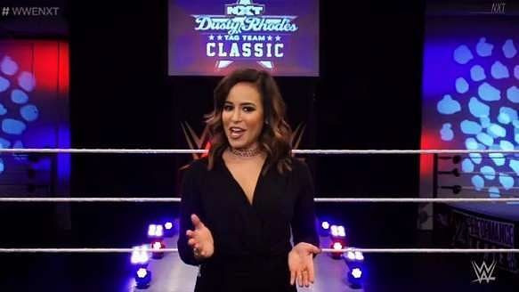 The hardworking interviewer was an essential part of this past week’s episode of NXT that saw the Semi-finals being decided. To host and walk us through the matches and what is coming up next week, she looked absolutely stunning and did a great job!