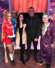 Paige took to Instagram to post a picture of her and Alberto El Presidenté in the Deportes Sin Cobara show hosted by Rosina Grosso and Karim Mendiburu. The host couple are dressed as Harley Quinn from Suicide Squad and Jared Leto’s version of The Joker.