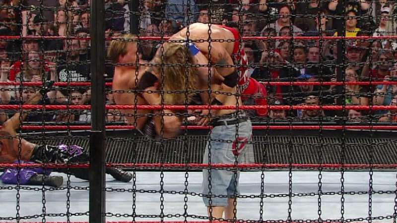 However, Michaels countered into a back body drop and hit Trips with Sweet Chin Music to win the first ever Elimination Chamber match and become World Champion for the first time since 1998.