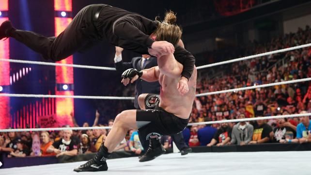 - For those that missed it, Seth Rollins refused to give Lesnar his rematch, so he went wild and delivered an F-5 to Michael Cole and a camera man. Cole whose shoe was comically left in the ring, was stretchered out to chants of "Thank You Brock!"
