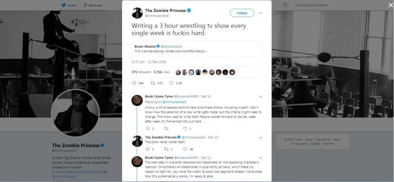 That is what former writer Jimmy Jacobs and wrestler Seth Rollins accomplished in their twitter exchange against fan resentment. Yet as last week's RAW shows us, there is a clear self-awareness at the core of the programming of its failures to deliver at the level best the product can.