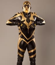 A character obsessed with films and the colour gold, Goldust wore a black and gold coloured jumpsuit while wearing black and gold face paint, and a platinum blonde wig over his short platinum blonde hair, with his appearance modelled after an Academy Award statue. I wonder how someone could survive wearing that suit in the summer. Credits to Dustin for pulling off something like this, though.