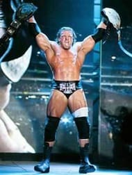 HHH (Hunter Hearst Helmsley) was accompanied by Chyna as he scored a win over Goldust (w/Marlena) in a singles match.