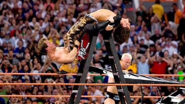 When it comes to ladder matches, there are two brothers that have a great wealth of experience to bring to the ring and The Hardys did just that at Wrestlemania 23. Bringing their tandem offense and high-risk style to the Money in the Bank ladder match, very few would find this environment quite as comfortable as the North Carolina pair. They teased repeating on Edge the same ladder manoeuvre that destroyed the face of Joey Mercury months before at Armageddon.