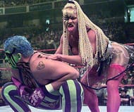 One of those was a bondage gimmick with Luna Vachon. Where he was gagged and chained; he even started wearing a metallic bra. Though the outfit suited his promiscuous character, it was just shocking to see someone walk out like that.