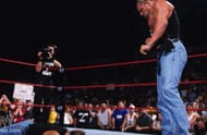 At the time, Pillman was at home recovering from a legitimate broken ankle so WWE sent over cameras to do an interview on Raw. Unbeknownst to everyone involved, Stone Cold Steve Austin had gotten wind of the cameras heading to Pillman’s house and decided to drop in unexpectedly himself.