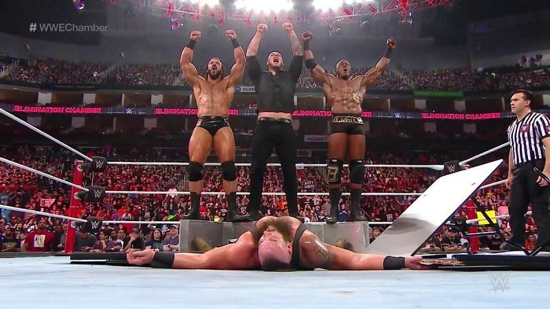 This brought out McIntyre, who came with a steel chair in hand. Lashley also emerged from behind, and they beat-up Strowman with steel chairs after which Lashley hit a spear and McIntyre a Claymore kick.