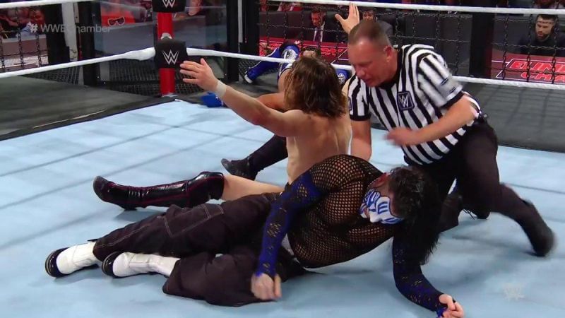 Another incredible spot saw Orton hit an RKO to AJ Styles while he was attempting a phenomenal forearm which led to the latter's elimination. Kingston then shockingly eliminated Orton after hitting trouble in paradise in a moment of poetic justice.