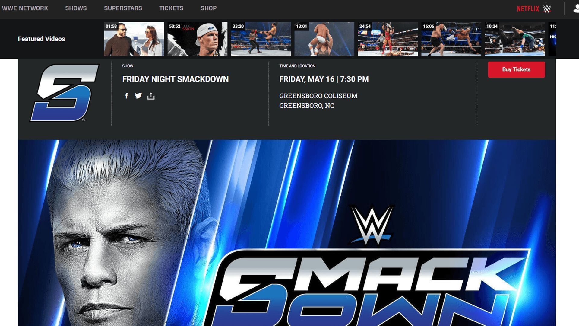 WWE’s official site has been seemingly advertising Cody Rhodes for the SmackDown after 2025 Backlash, which will emanate from Greensboro Coliseum in Greensboro, North Carolina, on May 16. The American Nightmare could return to address his fans for the first time since losing at WrestleMania 41 on the blue brand and could begin his redemption arc of regaining his title back from John Cena.